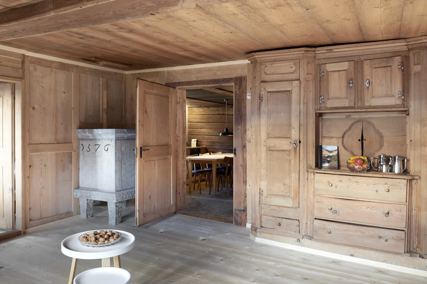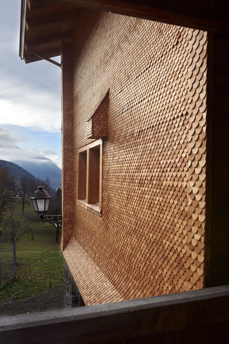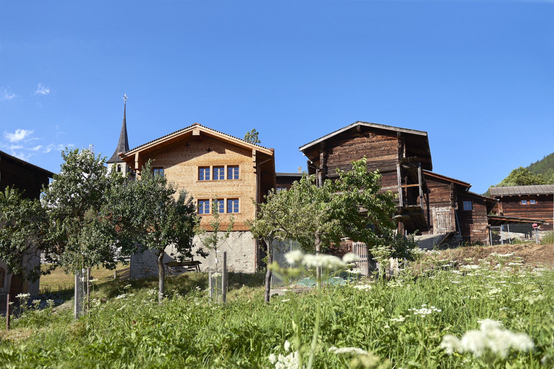 Das alte Wohnhaus aus dem 16. Jahrhundert ist ein stattlicher Blockbau mit hoch gestuftem Mauersockel. Das Gebäude befindet sich prominent gelegen, südlich der Pfarrkirche in Ernen. Der nordöstliche Anbau ist in Riegelbauweise erstellt, Fassadenseitig sind breite, sägerohe Lärchenbretter angebracht. Der Innenausbau im Anbau ist total in Fichtenholz gehalten. Im bestehenden Blockbauteil sind die bestehenden Blockwände und Verkleidungen erhalten und saniert worden. Die Cellulosedämmung sorgt für eine atmungsaktive und dampfdiffusionsoffene Konstruktion. Die West- und Südfassaden sind mit neuen Lärchenschindeln ersetzt worden. Dies ist eine, ebenfalls öfters gesehene, "gerandete" Fassadengestaltung in der Region Goms.