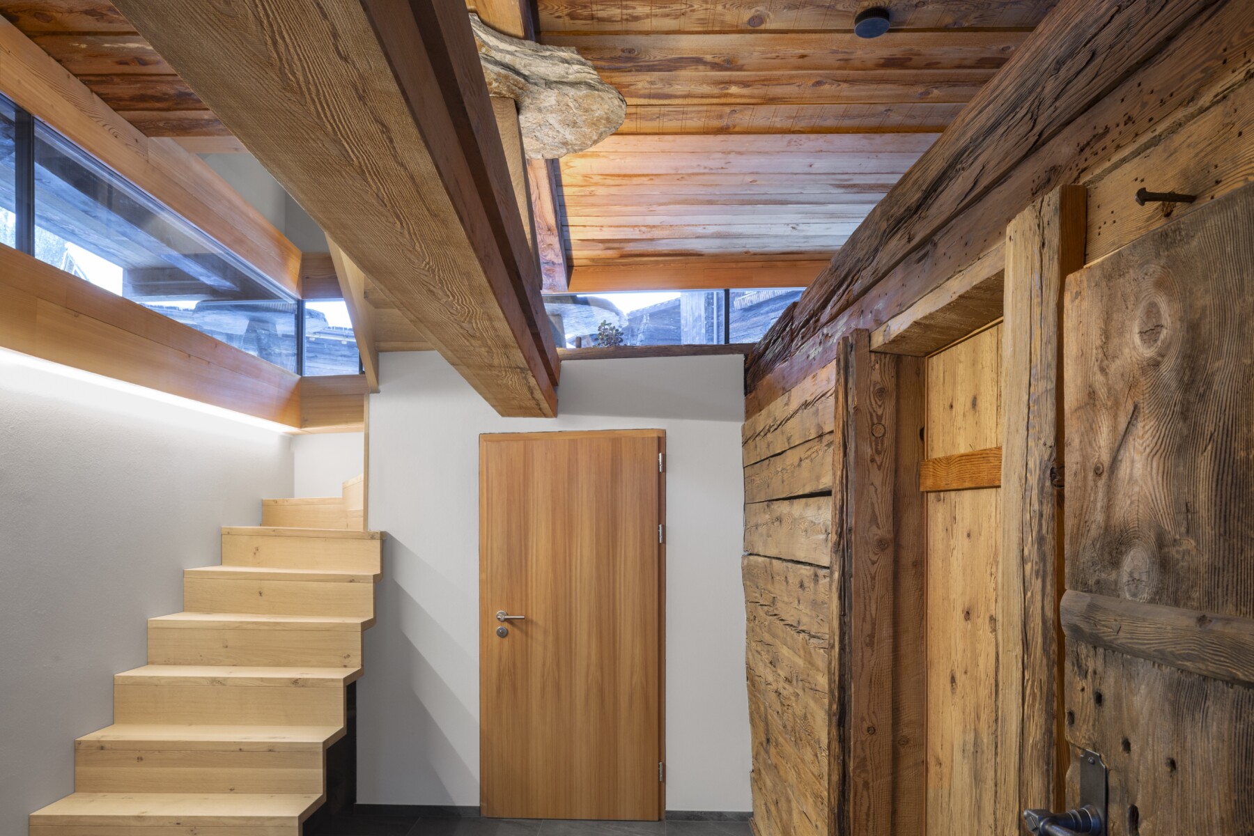 Betonmauerwerk, Altholz Lärche, Innenausbau Lärche - Eiche - Altholz Fichte, Sumpfkalk