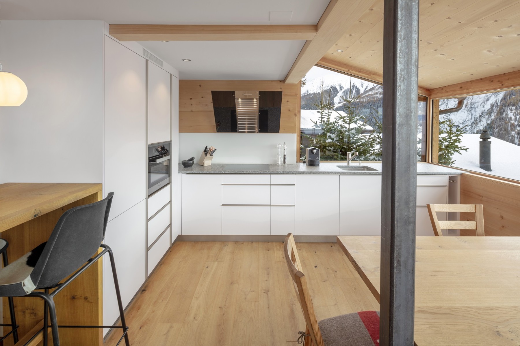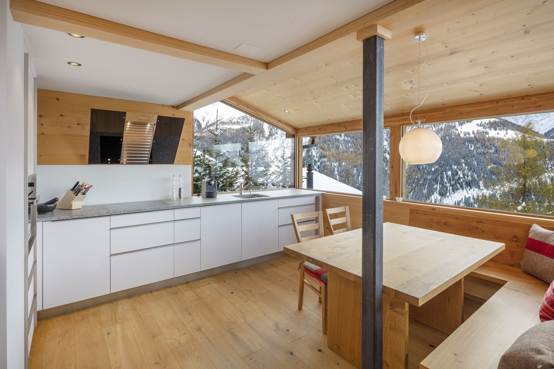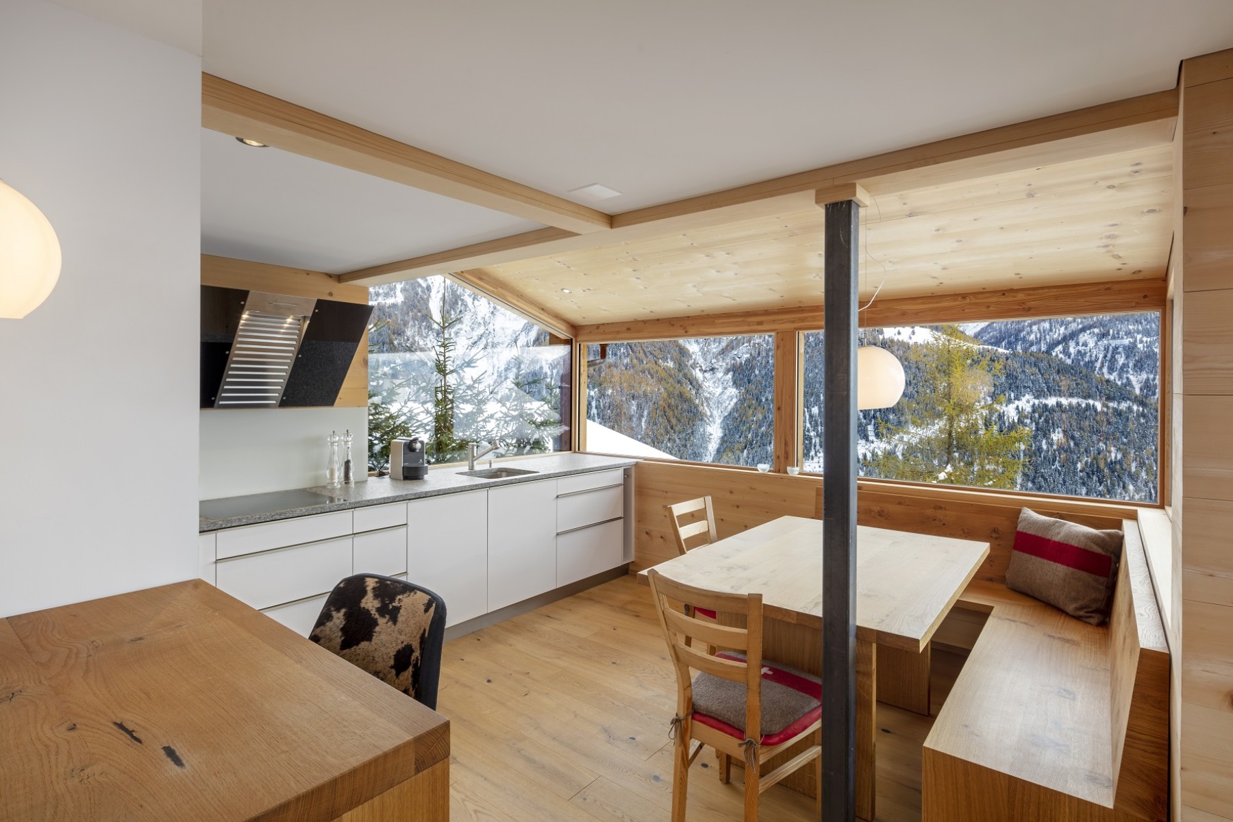 Das Wohnhaus, in den 1970-Jahren neu erbaut, stellt ein typisches Feriengebäude, aus einer intensiveren Phase der touristischen Entwicklung im Bellwald, dar. Der eingeschossige Blockbauteil ist auf dem gemauerten Sockelgeschoss aufgesetzt. Auf der Ostseite wurde neu ein Anbau für die Geschosserschliessung erstellt. Im Obergeschoss wurde der Küchen-Essraum nach Süden hin erweitert und hat durch die Ausrichtung zum Haupttal eine Aufwertung erhalten. Die ursprünglich zwei kleineren Wohnungen wurden zu einer grösseren Wohnung umgenutzt. Der Innenausbau ist total in Fichtenholz gehalten, die Einbauten dazu wurden gestalterisch in die Wände eingebaut.