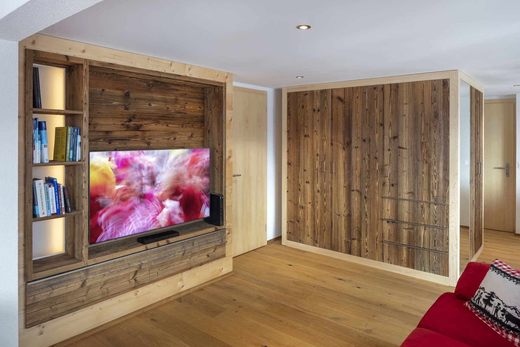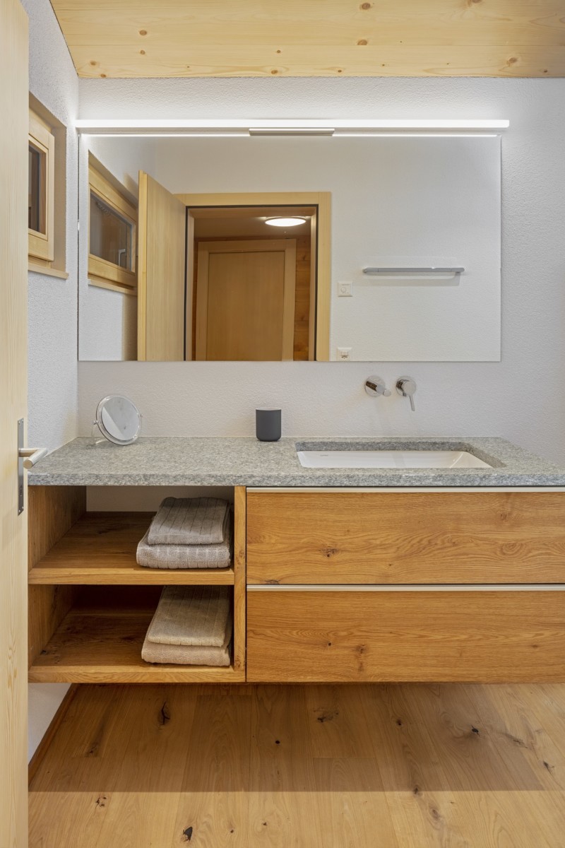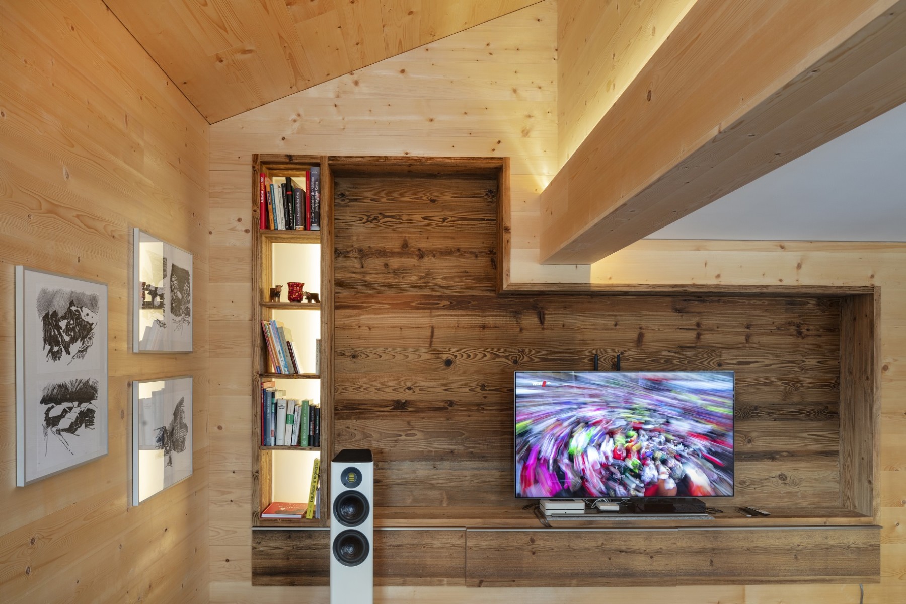 Das Wohnhaus, in den 1970-Jahren neu erbaut, stellt ein typisches Feriengebäude, aus einer intensiveren Phase der touristischen Entwicklung im Bellwald, dar. Der eingeschossige Blockbauteil ist auf dem gemauerten Sockelgeschoss aufgesetzt. Auf der Ostseite wurde neu ein Anbau für die Geschosserschliessung erstellt. Im Obergeschoss wurde der Küchen-Essraum nach Süden hin erweitert und hat durch die Ausrichtung zum Haupttal eine Aufwertung erhalten. Die ursprünglich zwei kleineren Wohnungen wurden zu einer grösseren Wohnung umgenutzt. Der Innenausbau ist total in Fichtenholz gehalten, die Einbauten dazu wurden gestalterisch in die Wände eingebaut.